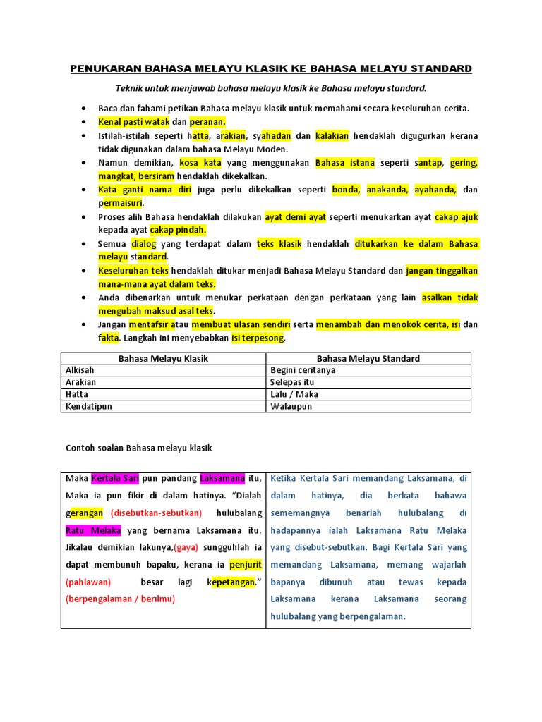 Penukaran Bahasa Melayu Klasik Ke Bahasa Melayu Standard Pdf